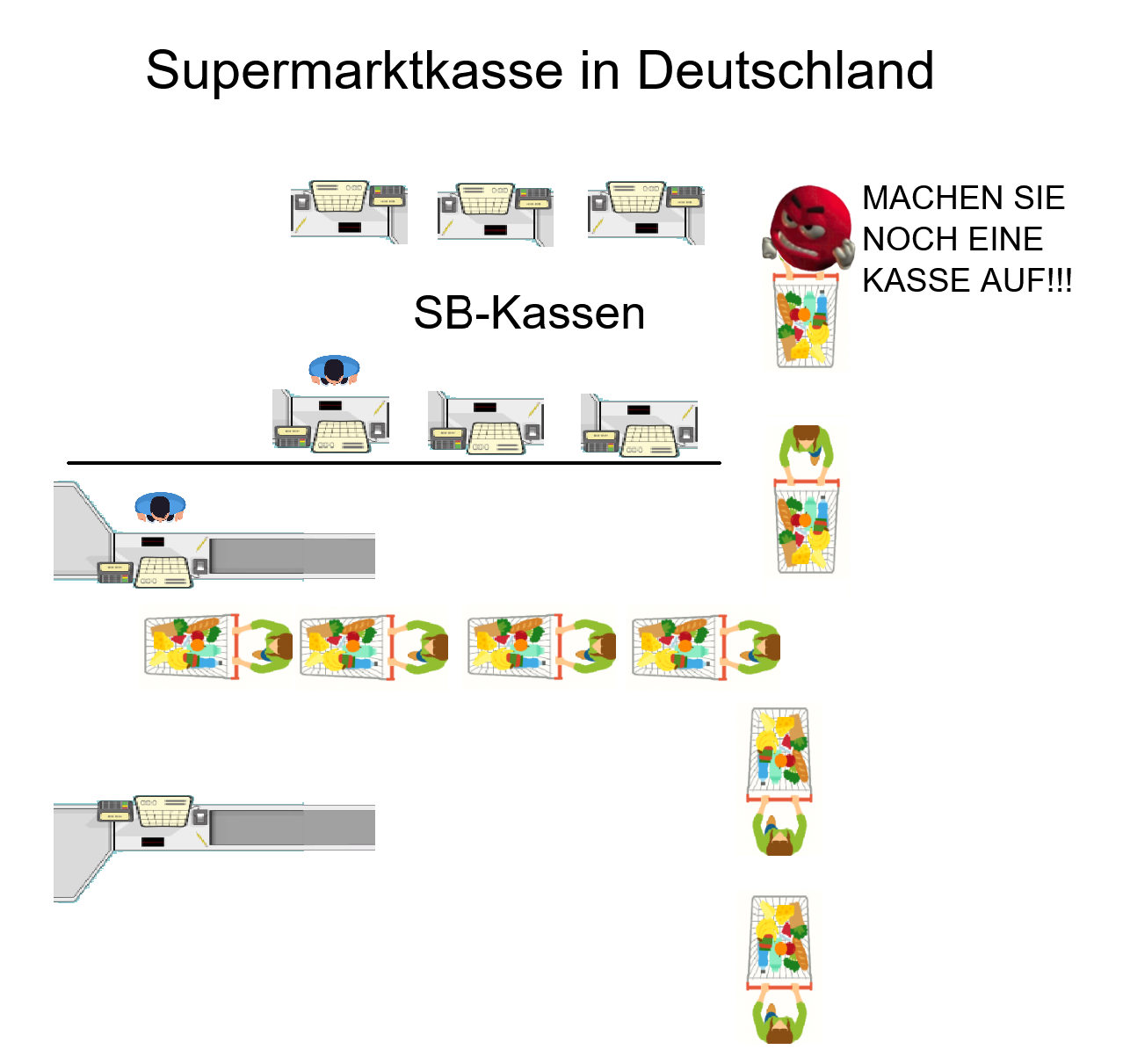 >>217202445Gestern lidl1 kasse auf, bid l hinten schlange. Locker 30+ LeuteVon 3 SB Kassen war nur eine belegt, war also sofort wieder draussenKein Plan warum Menschen so ticken & Lebenszeit verschwenden