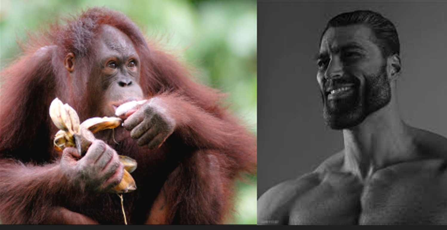 >Here, you eat banana>No, monkey>You no like banana?>No, monkey