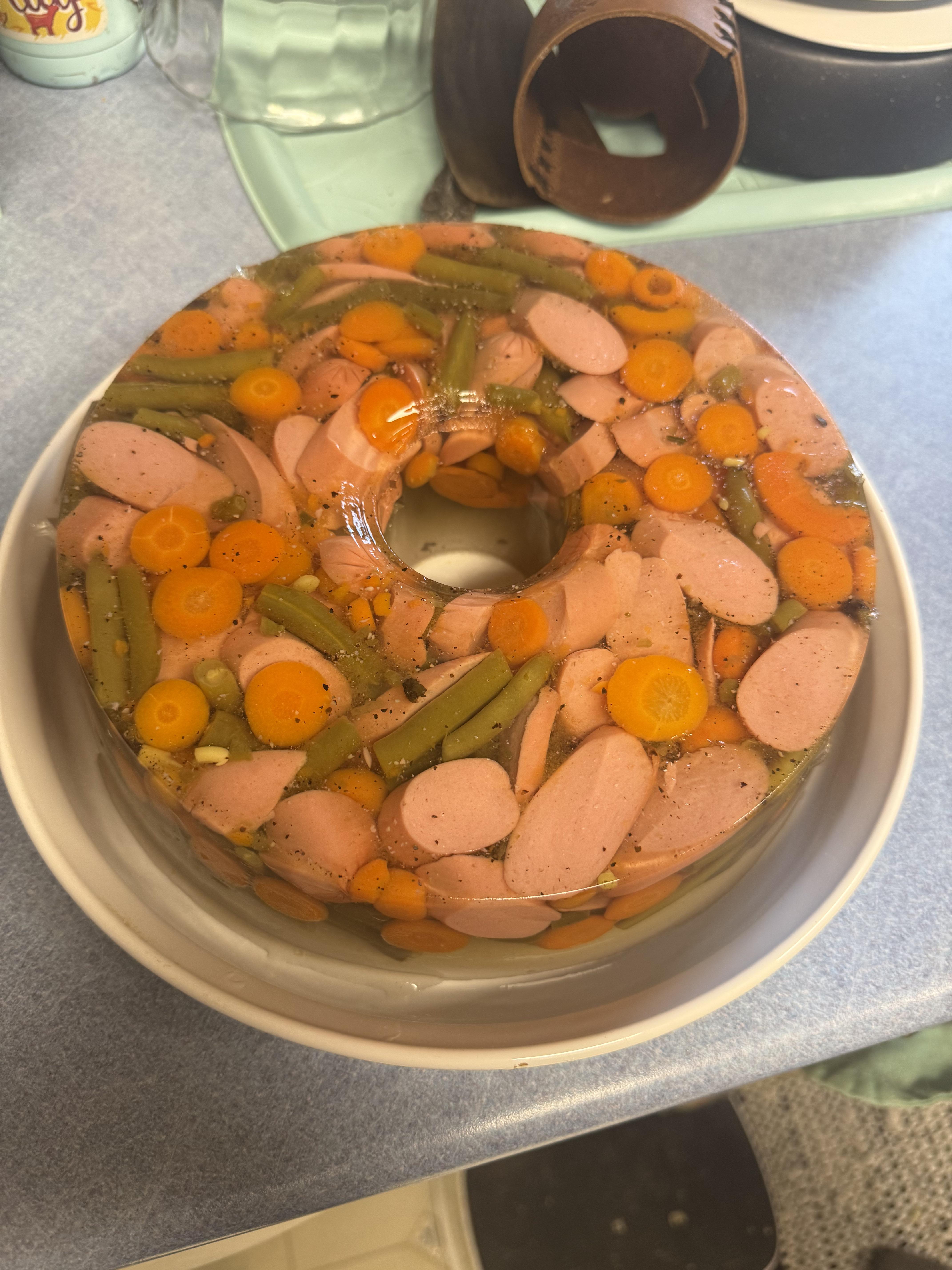 >>217220162The bits and pieces in the gelatin gives it an uncanny resolution, I understand this effect on people who aren't at all used to seeing solid ""foods"" with this transparent property.