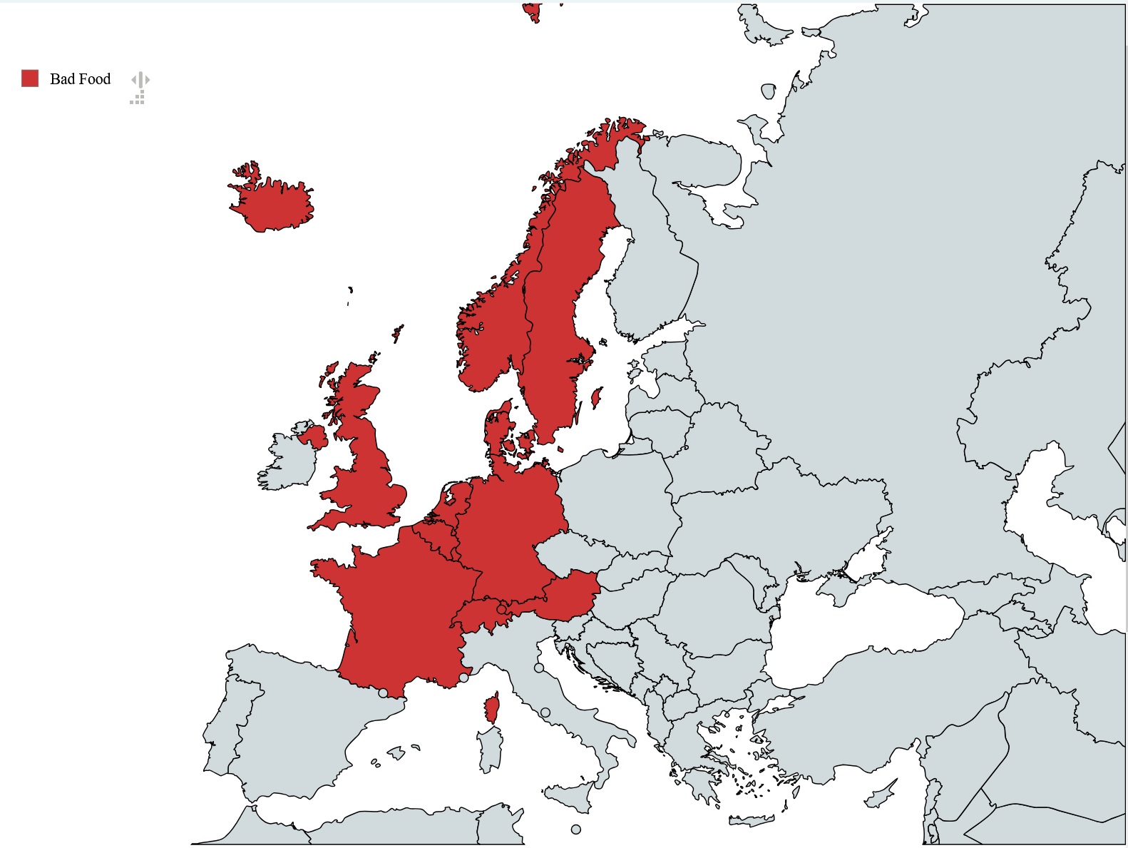 You'll starve in red. Don't know enough about Irish cuisine so they're left out for now.