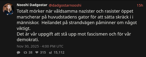 Asg vilket mongoI Kungsträdgården höll Alternativ för Sveriges partiledare Gustav Kasselstrand tal.– Jag känner mig som pedofiljägarna Dumpen, men mot globalistlakejer istället för pedofiler. Jag är globalistjägare, sade han.