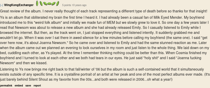 >>217464394yeah, and something that would genuinely have upset me toolove listening to her songs when i'm feeling delicate and writing in my diary, it's the closest feeling a man can get to having a period i imagine