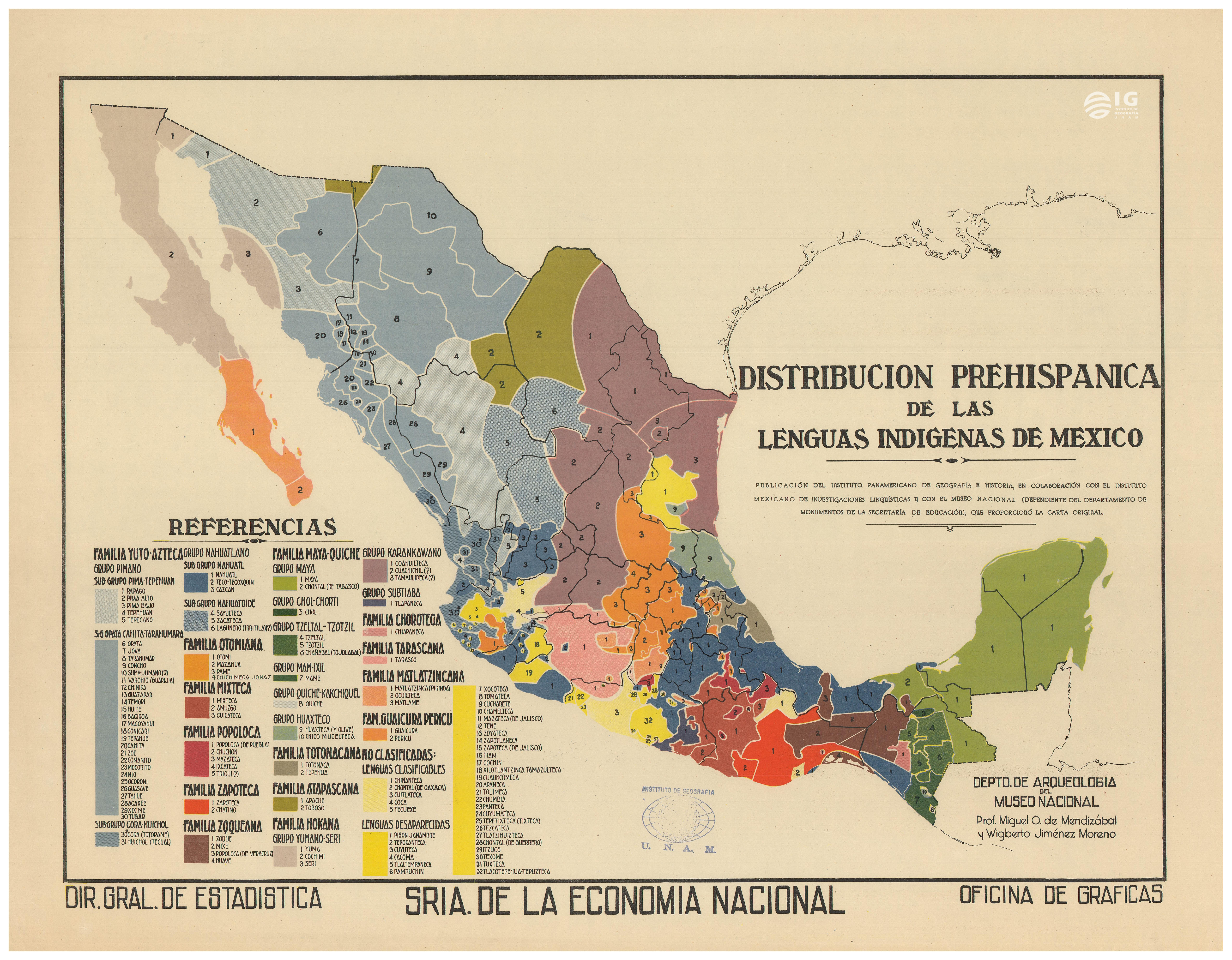 un mapa viejo de los años 30 sobre la distribucion de las lenguas indigenas en mexico antes de la invasion española>esc la mayoria de las lenguas en jalisco, guerrero, colima, sinaloa, michoacan y el norte nunca fueron registradas a fondo y no hay ningun descendiente el misterio me come