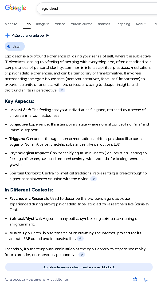 eu acho que ego death no final vai virar pra mim mais um termo meio "mau usado" pela comunidade psicodelica...