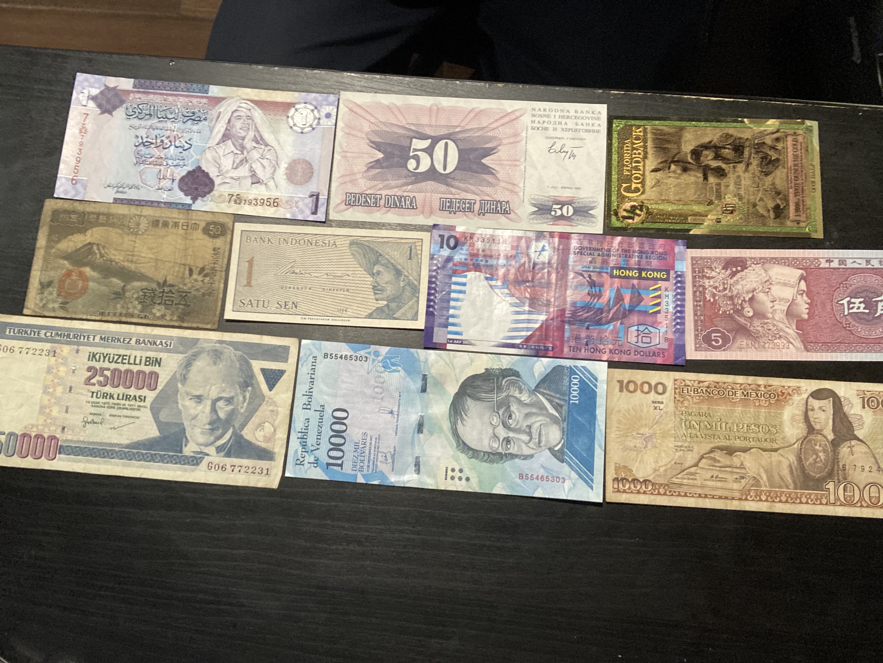 Recuerdo haber tenido un billete de Honduras y otro de 2 dolares pero no se donde quedaron