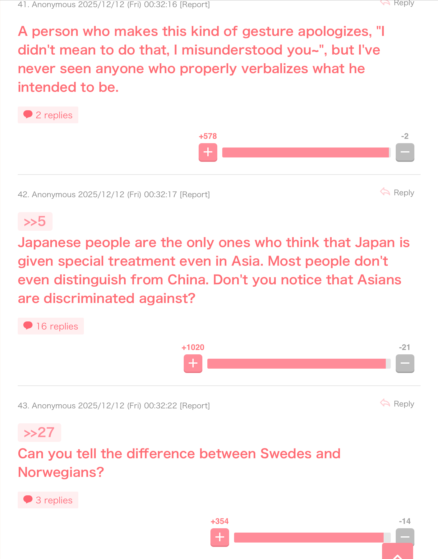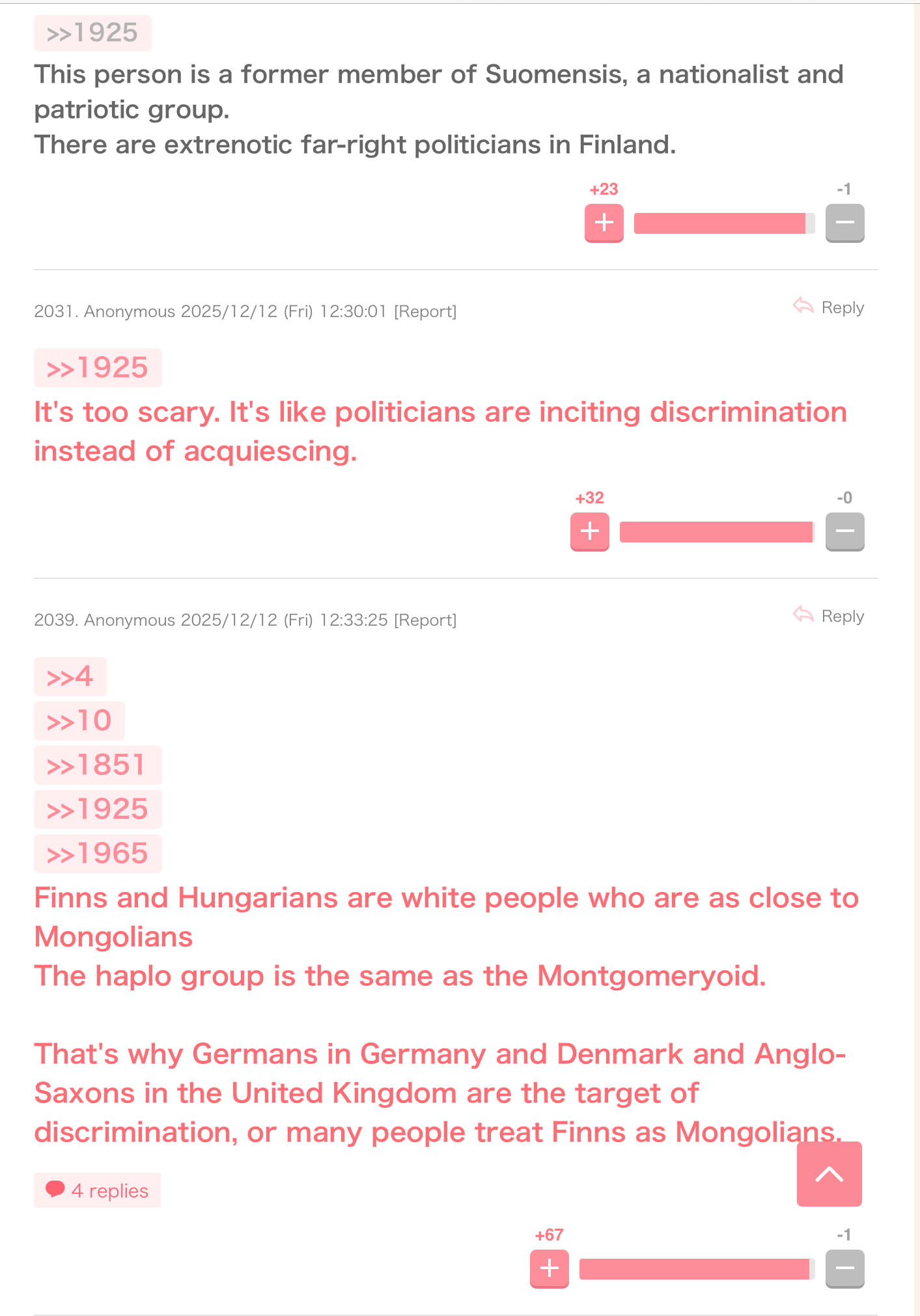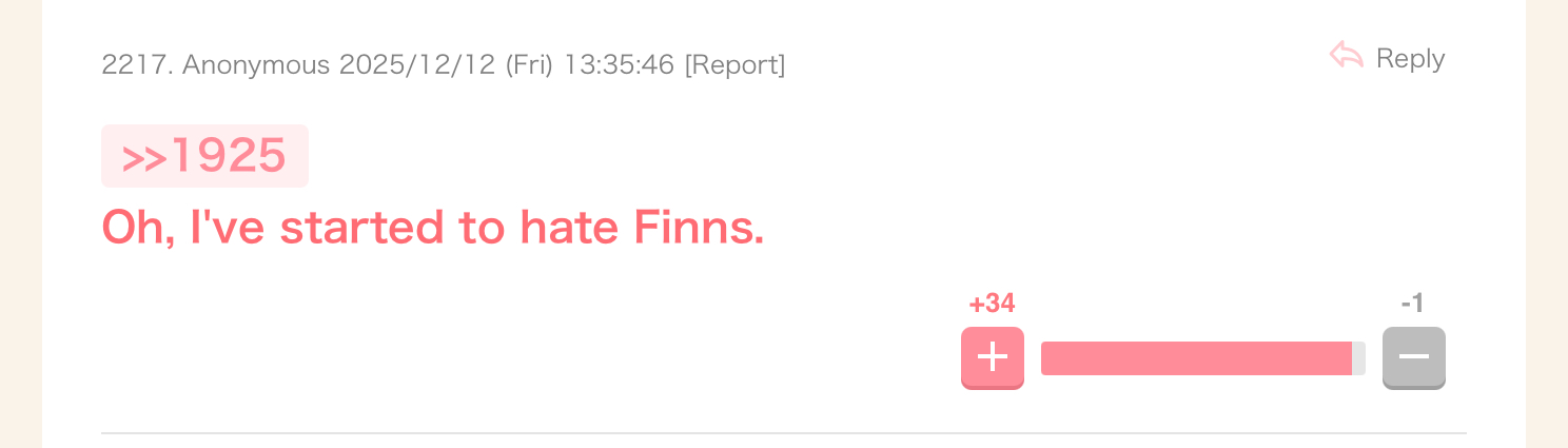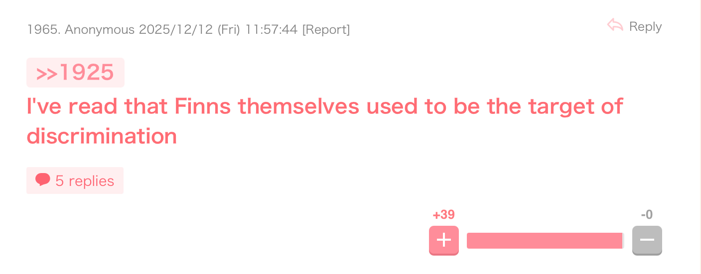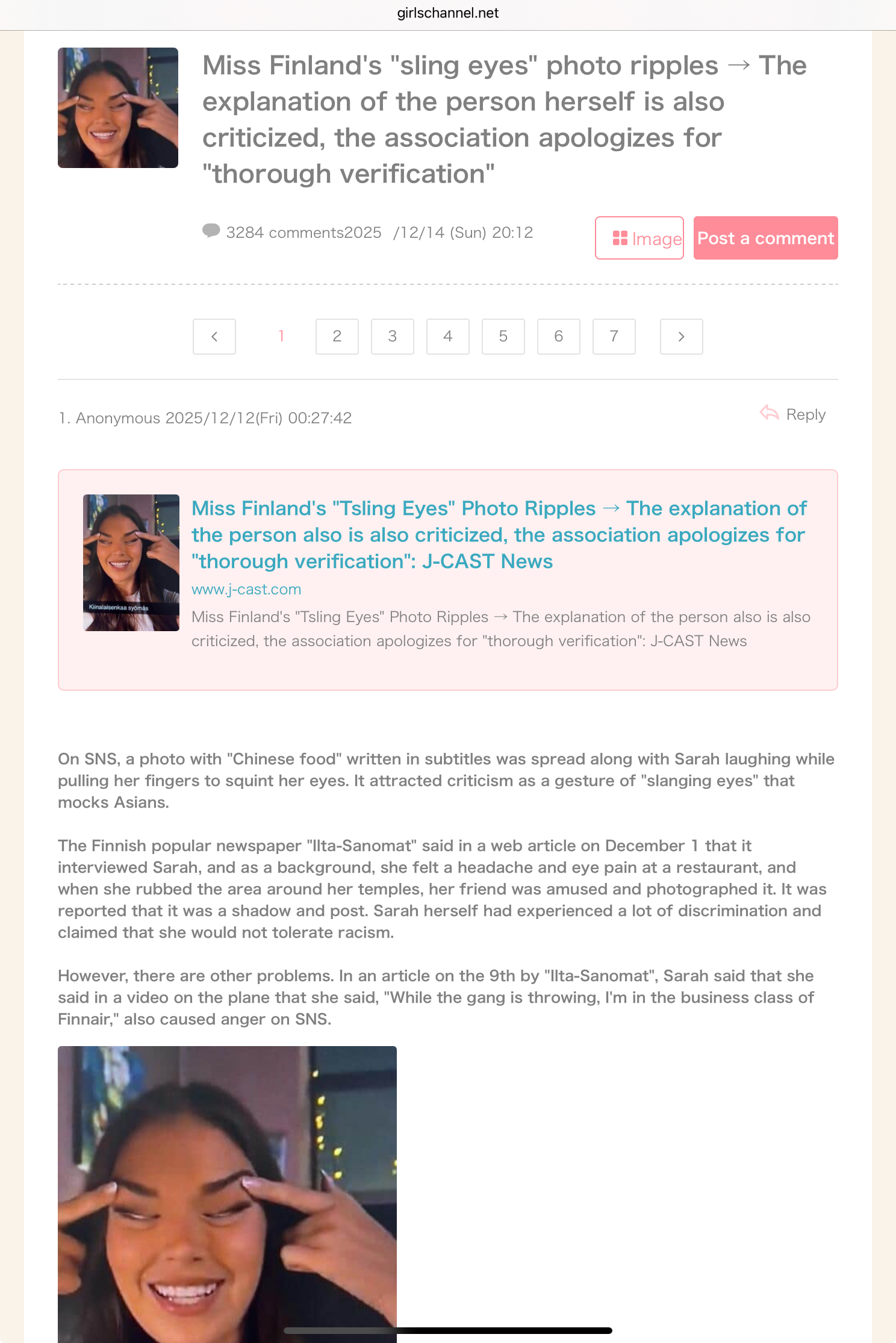 One of the most popular threads today on a female-oriented Japanese imageboard is the incident of the racist gesture from Miss Finland 2025.