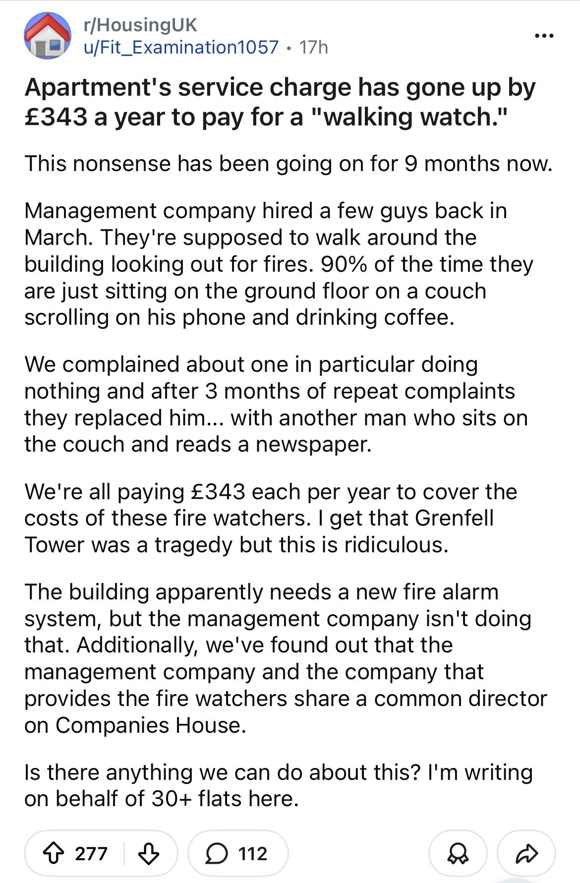 In the UK as a result of post-grenfell regulations we now have manual fire alarm systems mate up of Africans who walk around a building looking for fires Africans being Africans though they'll even slack off on the easiest most nothing job there is