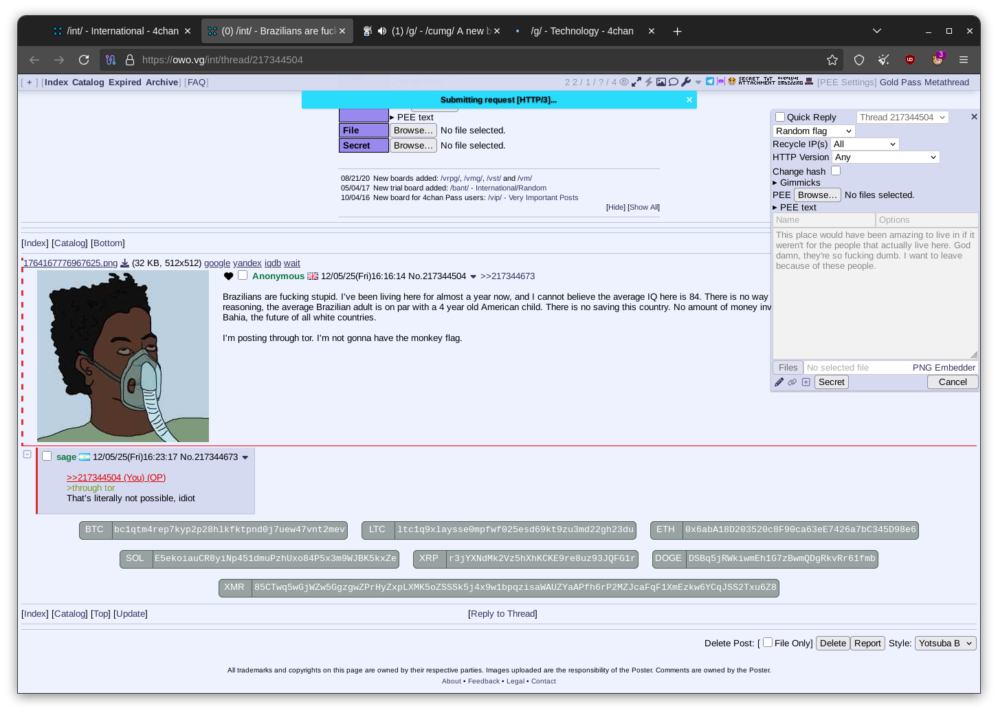 >>217623132>NOOO STOP EXPOSING US FOR RAPING KIDS!!!! >IF I MAKE UP BULLSHIT ABOUT YOU WITH A RANDOM SCREENSHOT OTHER POVERTYBALL THIRDIES WILL BE FOOLED cope you will never be med or roman or human pedo wog https://boards.4chan.org/int/catalog#