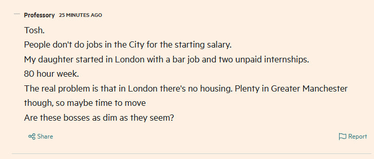 >>217627806I don't know enough because I am from Eastern Europe and in my country parents are happy if you aren't a raging alcoholic but when I read the Financial Times I often find the "pull yourself by bootstraps" Western boomers, picrelated is the last one I saw in the comments there. If a guy is crazy enough to be ok with his child working 80 hours a week, he is crazy enough to kick the child out as well