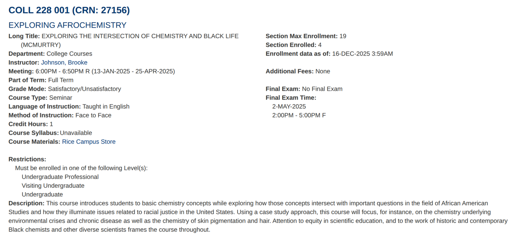 >Rice University offers "afrochemistry" class that will explore the intersection of racial justice and chemistry dubbing it the study of "black life matter."