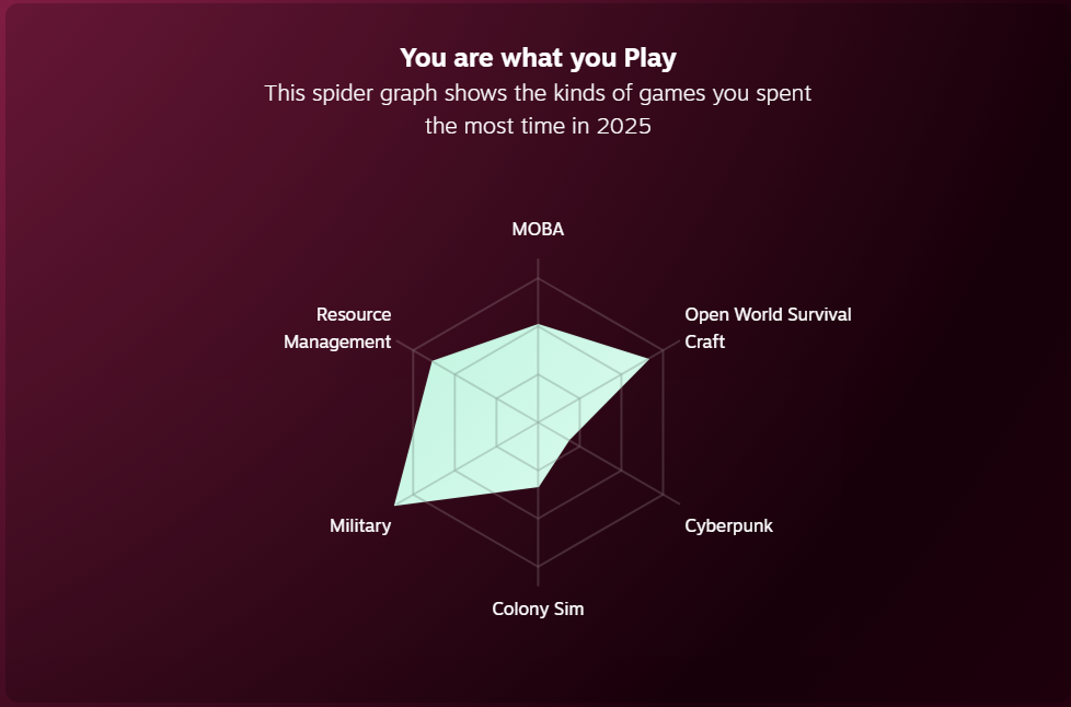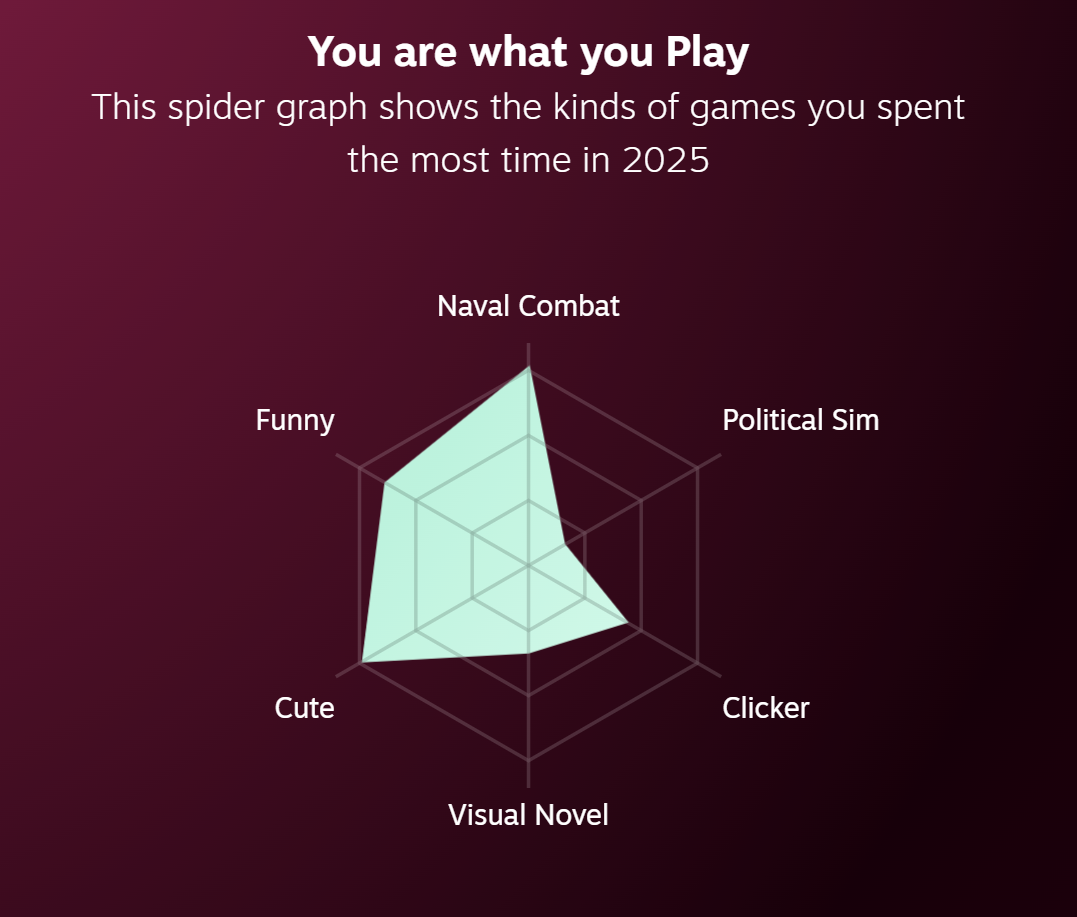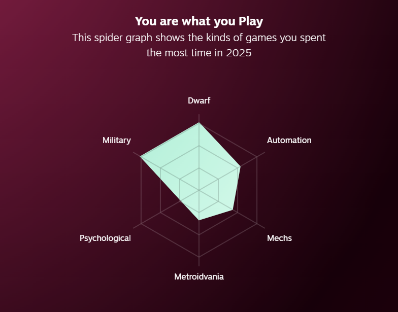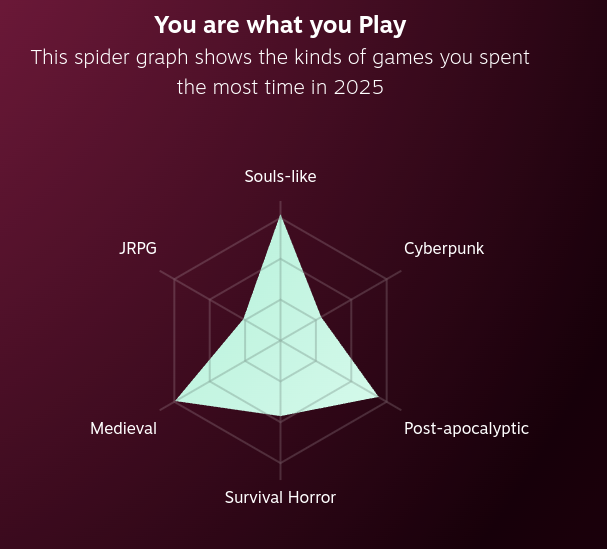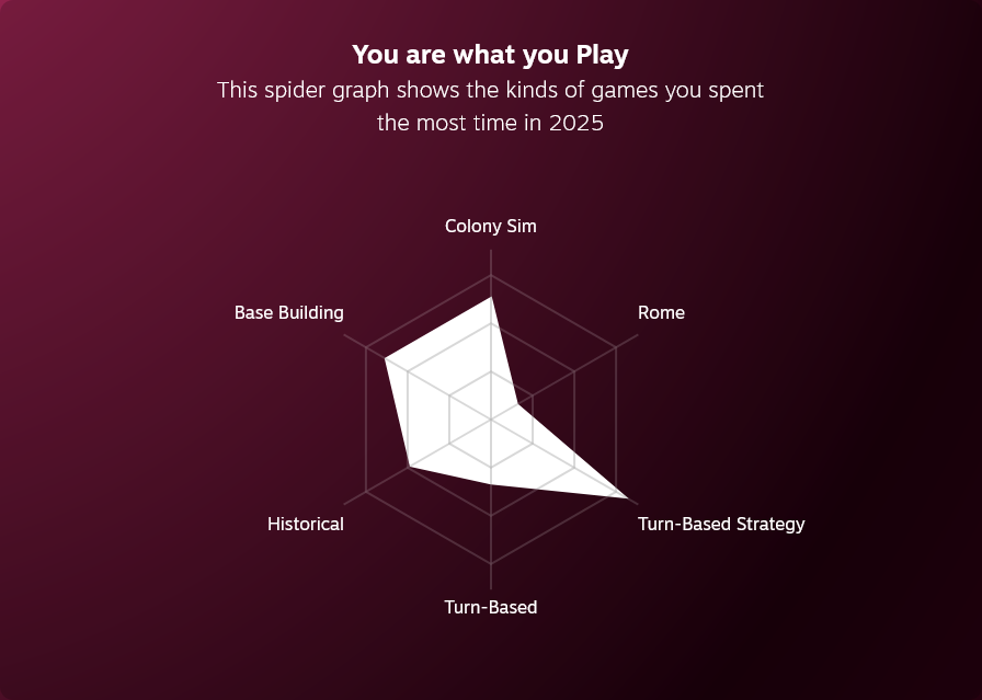 pelasin vaan neljää peliä koko vuonna, civ 5 ja 6, rimworld sekä testasin imperator romea pikkasen enkä jaksanut vaivautua opetteleen miten peli toimii