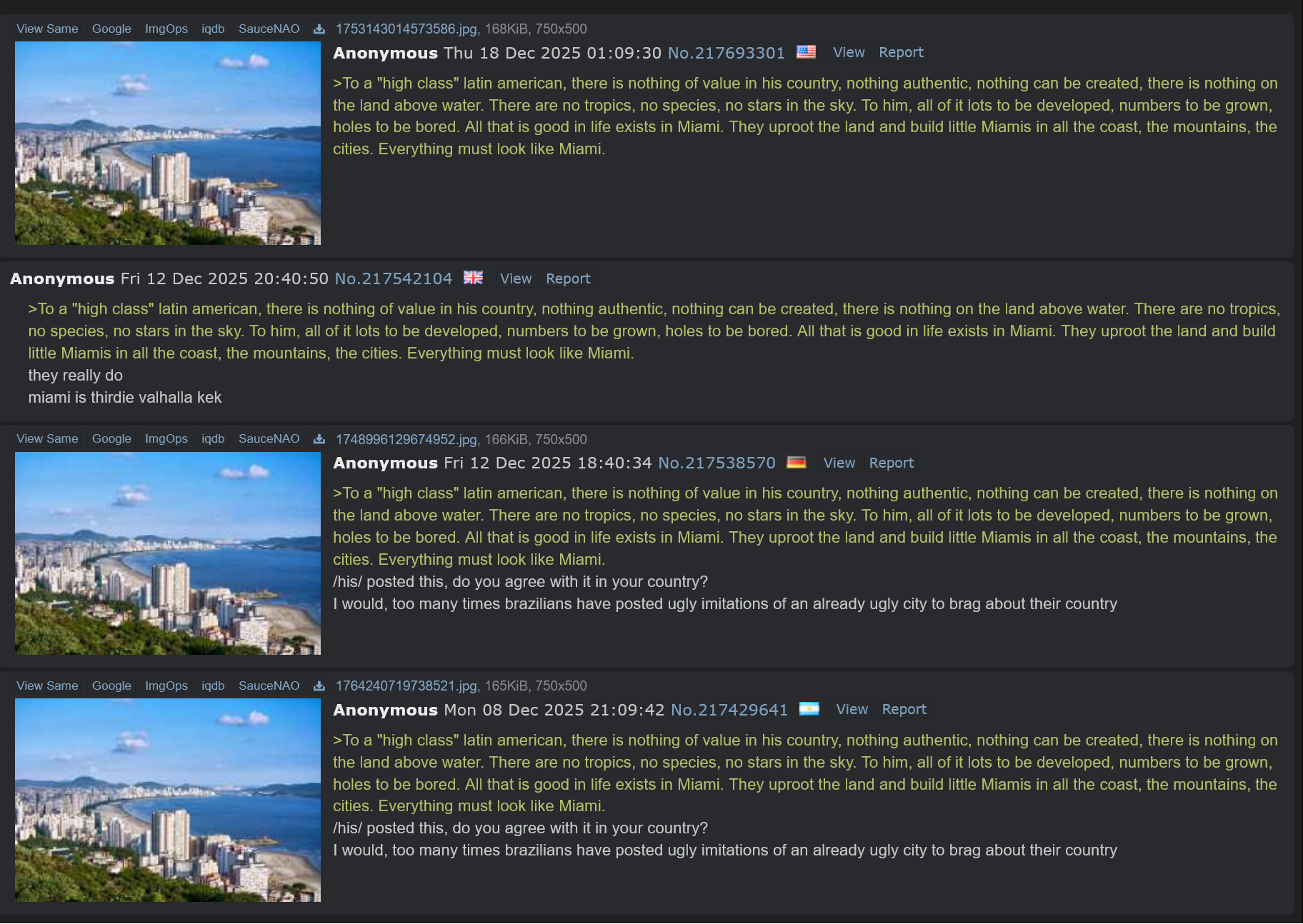 >>217693301are you really comparing our majestic Atlantic Forest to fucking Miami?one inch of my paradise is worth much more than anything you have there...