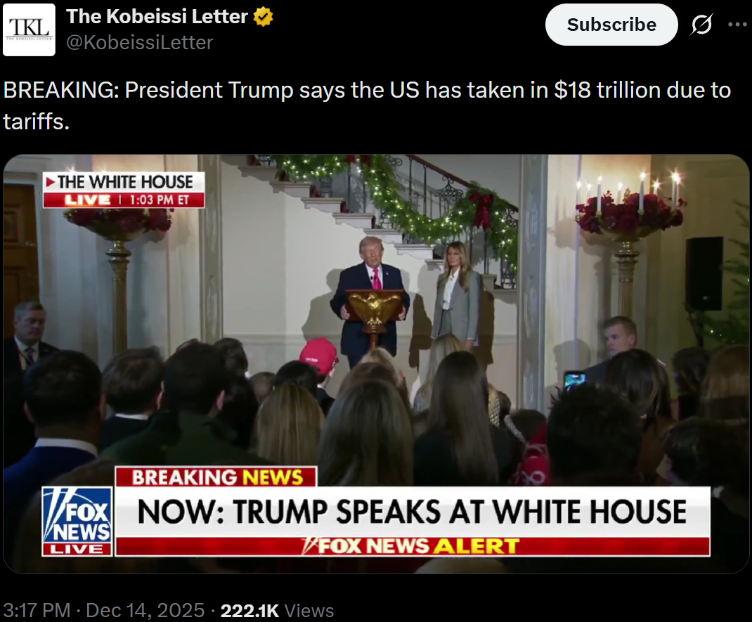 >>217696043>The tariffs brought 18 trillion>Trust me bro it totally did>Proof? How dare you insult my glorious management of the economy!>Job numbers are down? Don't feed me these lies! Tell me what I want to hear!