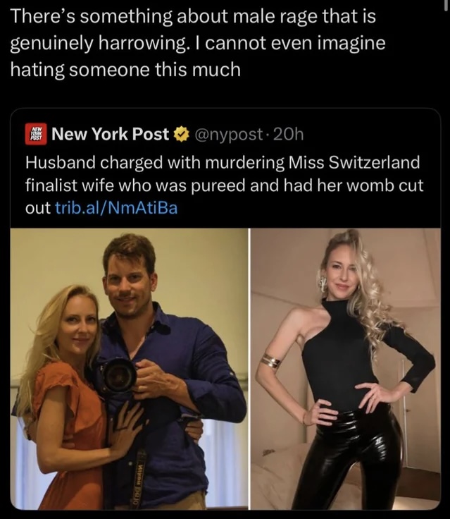 >>217757890>do men commit horrible crimes in your country too? Yes we had several such cases this year, although not as gory as this one>why are men like this?Many men cannot handle the wife's infidelity (be it real or imagined) and thus want to kill her, even at the cost of going to prison or committing suicide afterwards