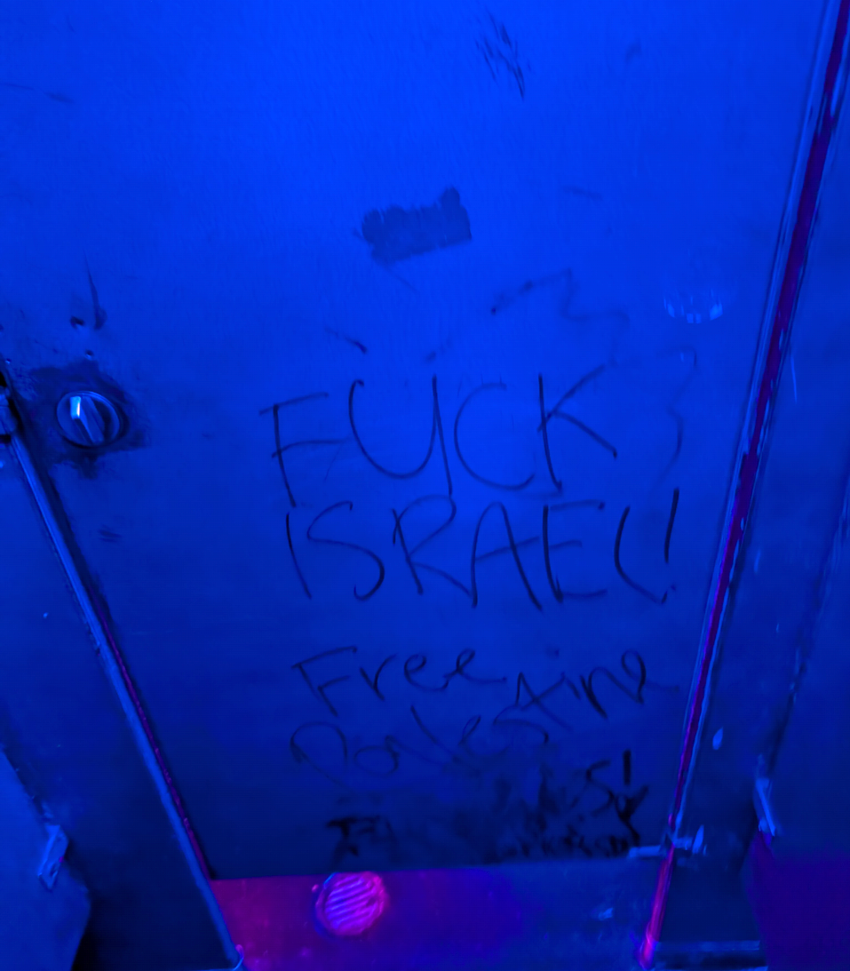 >יצאתי עם אשתי לרקוד לחג קרצמל>ראיתי את זה כשהייתי בשירותים למה הם ככה? מה מניע אדם לשרבט מסרים מלאי שנאה במקום של אושר וריקוד?