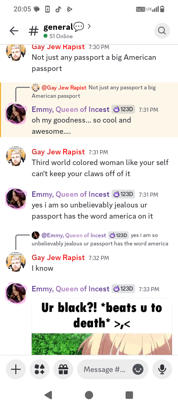 >>217776378It put me in a nother server I think with just me and it, I'm either going to ignore or call it's bluff and tell it to come to Jerusalem on Thursday so we can go to a bar and walk around the shulk