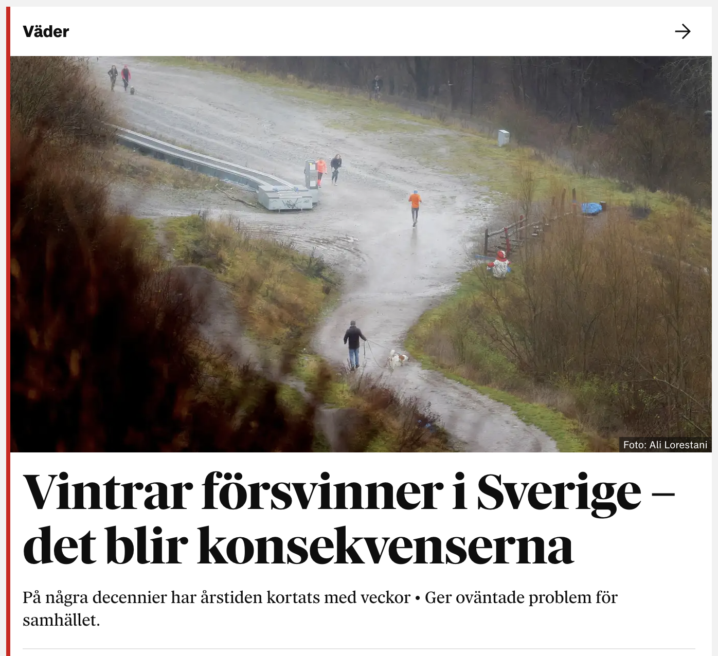 >>217784464– De vita vintrarna väntas bli försvinnande få i södra Sverige framöver. Frågan är bara hur mycket klimatet förändras och hur snabbt det går, säger Charlotta Eriksson på SMHI.Hur känner du själv inför det som sker?– För mig känns det personligen väldigt tråkigt och jobbigt, det var vintervädret som fick mig att bli meteorolog. Samtidigt ska man minnas att det finns betydligt mer akuta effekter av klimatförändringen – och att vi faktiskt kan påverka hur mycket av vintrarna som försvinner. Detta är ingen naturlig förändring.