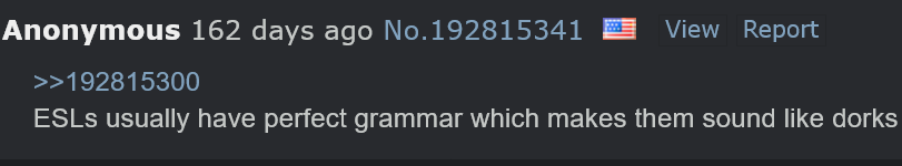 Stupid esls and theyre perfect grammers
