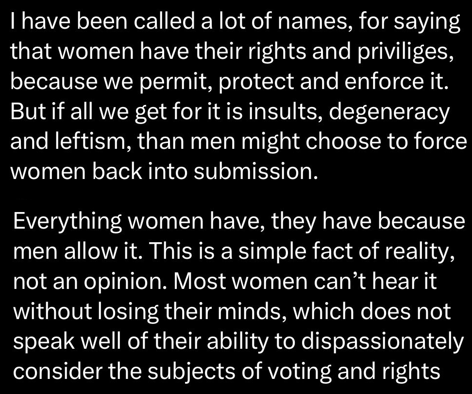 Fast enligt den här logiken så borde suedi vara tacksam varje gång han inte blir rånad. För, typ, blattus väljer att inte råna dig. Du förblir icke-rånad av blattus goda vilja. Visa tacksamhet