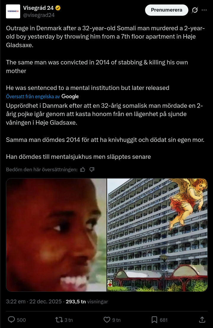 oj så kan det gå. och danmark är ju ett av få länder som tagit reda på detta med invandringen och satt ner foten hårt. ja jäklar nästan så att den enda lösningen är att ingen av dem ska vara här