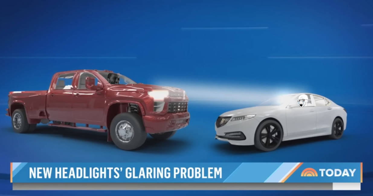 >>217828659>>217828612Yes except the trend here for a few years was to move the headlights down into the bumper. Its impossible to drive a small car because everything else including pesky scooters have their beams aimed at your eyes. LED headlights is only a problem because of morons who can't aim them or use low beam. LED taillamps are a problem all the time.