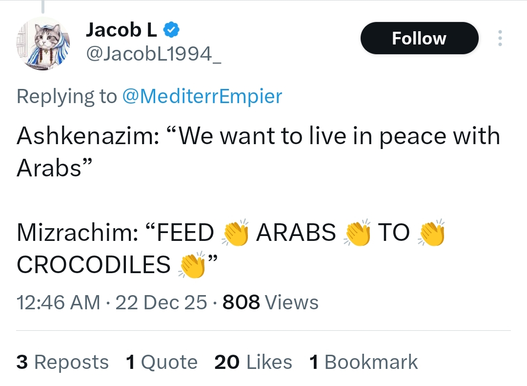 >>217830833> Ashkenazi - Germanic or western/ Old aristocratic jews Entirely secular, controls politics, NGO, Banks, etc. Very rich and cunning, Owns a mansion in a moshav, looks down on everyone else. > Ashkenazi - Ostjuden/Mixed Ashkenazi Middle class, mostly secular. Goes on a vacation every summer to europe, owns an apartment in gush dan, works as a software developer or lawyer. > Actual sephardics Middle class, small business owner, mostly traditionally religious, owns a house or apartment in the periphery. Goes to dubai or balkans for vacation> Mizrahis/Soviet olimWorking class, works retail or for the government. rents an old ass apartment for 1500 dollars per month, if can afford a vacation it’s mostly to thailand or south america.Haredim and arabs are their own separate things