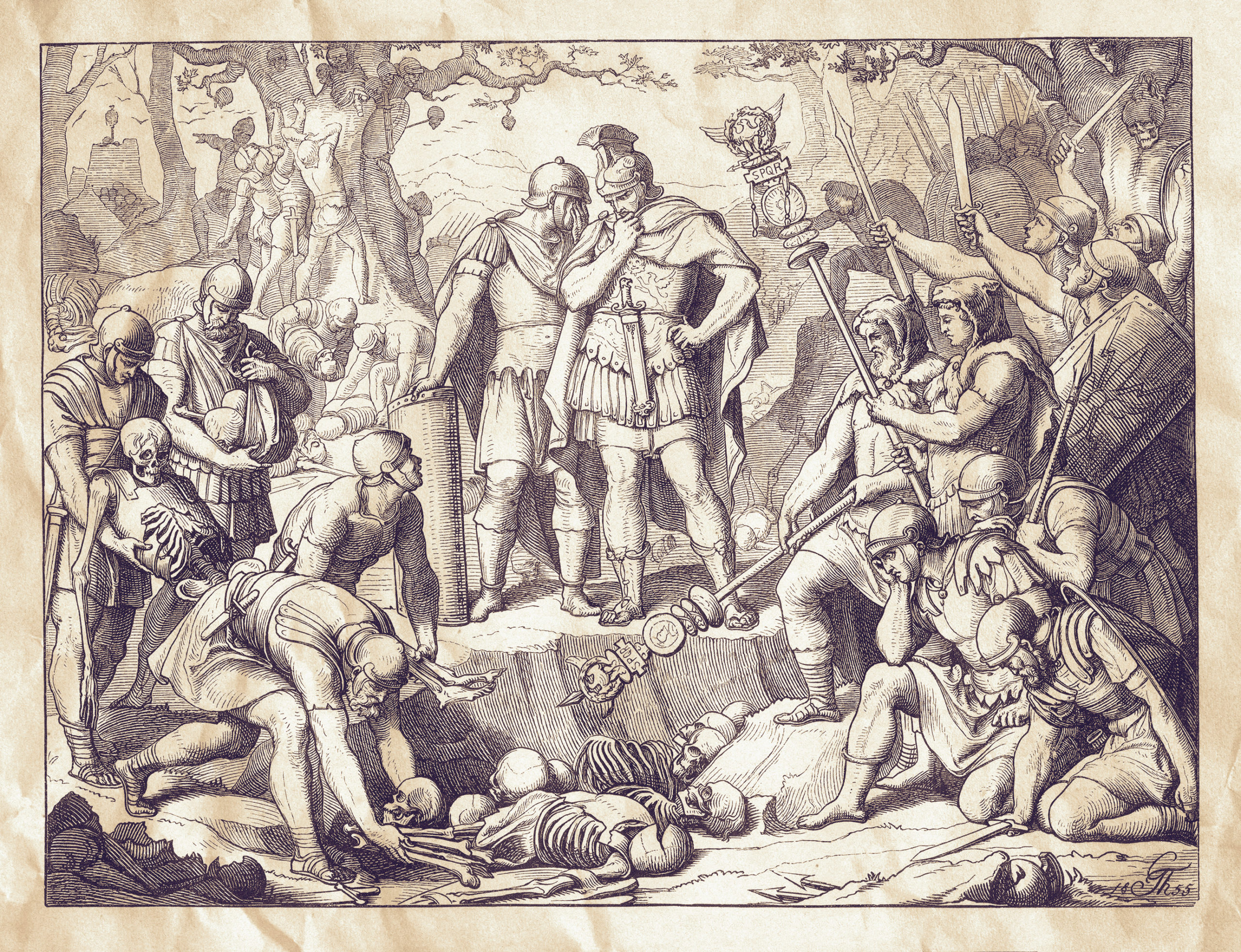 Germanicus and his men burying the remains from Teutoburg forest