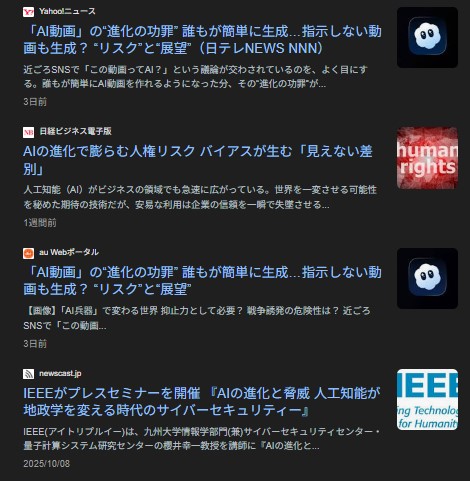 っで…そこには 具体的な固有名詞とか 使われまくってたから スクショも撮って無いんやけどな具体的には >>218061238 に貼った画像見た方が 分かりやすいかも知れんわ>恐ろしいのは、この計算機が一つでは無く、金融、軍事、そして情報(ニュースやSNS)を司るそれぞれの知能(AI)が、同じ場所で「一つの歪んだ価値観」を共有し始めてる事です。
