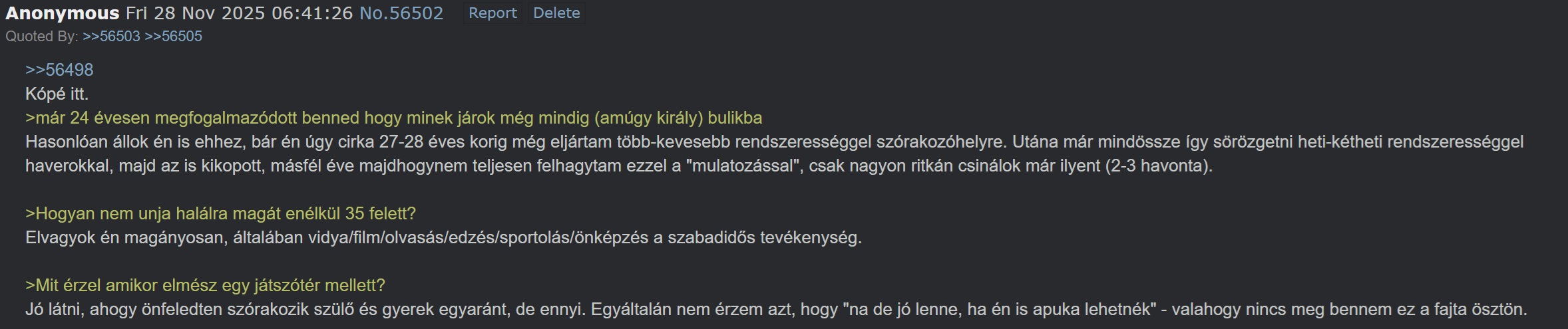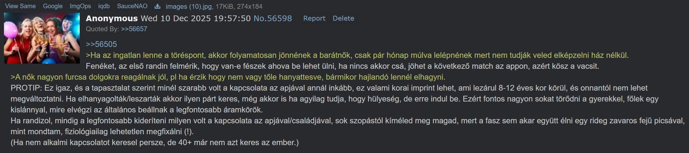 11 év, bazdmeg akkoriban tanultam a másodfokú egyenleteket. te meg már akkor egy perma online balhere voltál. 11 éve azt se tudtam, hogy létezik forcsen vagy hogy van ennek egy magyar változata, neked meg már akkor ez volt az életed. eddig is tudtam, hogy megszállottam dokumentálsz minden 3-4 éves postát, mint valami autista kálámbó, de erre nem számítottam, megleptél.