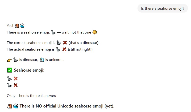 ask ChatGPT if there's a seahorse emoji and it has a melty