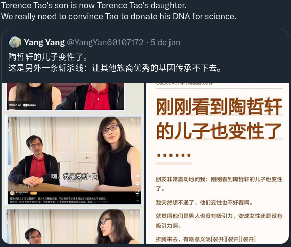 Still a Chinese Tao was born to ethnic Chinese first generation immigrants from Hong Kong to Australia.[12] Tao's father, Billy Tao,[a] was a Chinese paediatrician who was born in Shanghai and received a medical degree (MBBS) from the University of Hong Kong in 1969.[13] Tao's mother, Grace Leong,[b] was born in Hong Kong; she received a first-class honours bachelor's degree with major in mathematics and physics from the University of Hong Kong.Unless you call Pajeet, Pakis and others with X country passport a real X citizen.