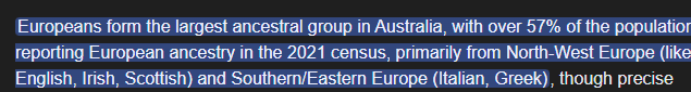 >>218276192In reality it's 80% European, just some of them just identify as Australian or plain European without ethnicity