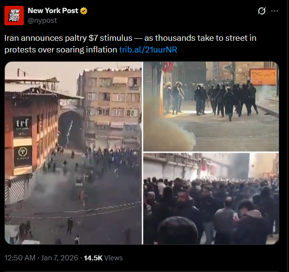 >Internet cut off in all Iran>Riots in all cities even happening in Tehran already probably the biggest ever seen>Buildings being burned down>IGRC members beaten down in streetshttps://x.com/FaytuksNetwork/status/2009329401075470548lads I think this might be it.