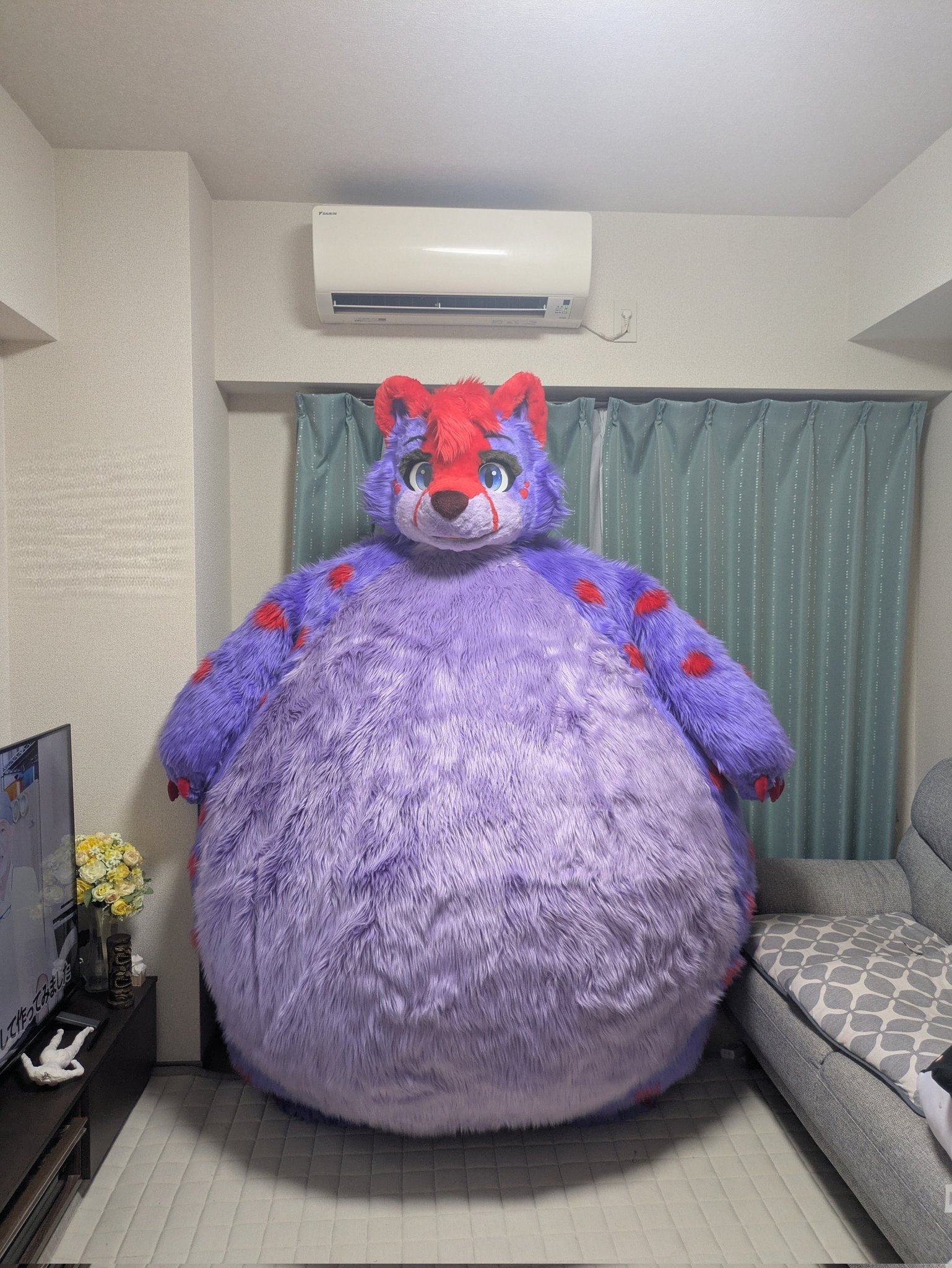 Eastern style furry art and costumes all have that flat, wide, ultraneotenous look to the degree that it's often hard to even tell what species it's supposed to be (arr rook same), while western furry art and costumes have pointier, more protruding features that are more distinct between species and tend to be less neotenous. It's basically the same as eastern vs western cartoons and east asian vs white facial anatomy.