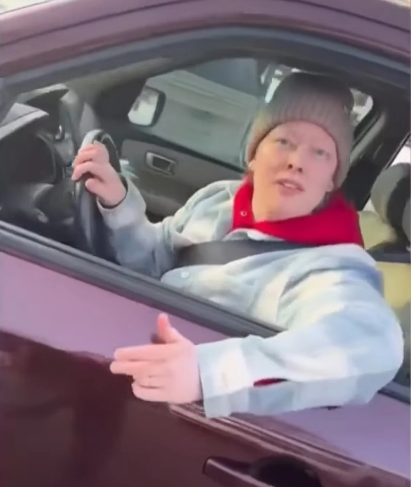 Att knuffa till någon med sin bil när man försöker köra iväg är oändligt långt ifrån att med uppstått vilja köra ihjäl denne. Det kan även du förstå.