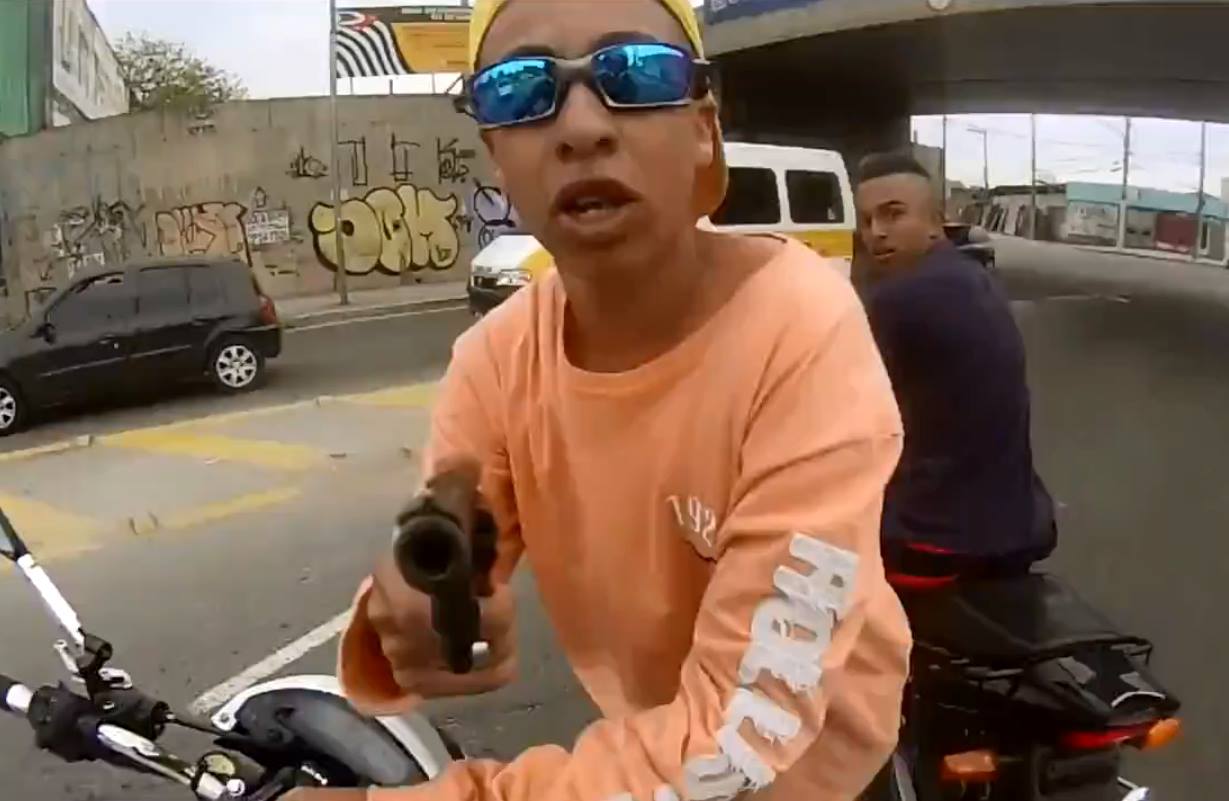 >han fortsätter skjuta två skott när bilen ännu mer uppenbart är påväg bort från honom