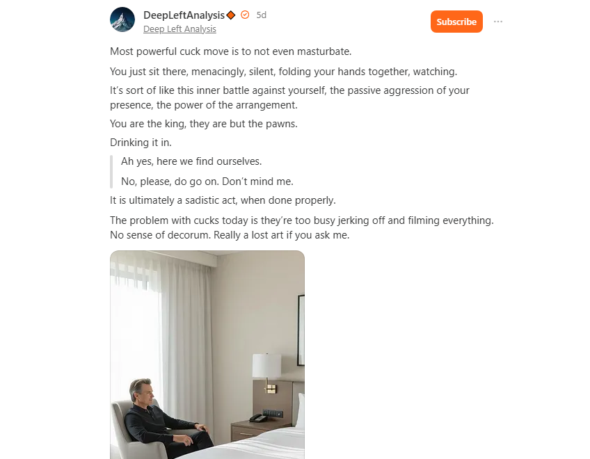 Got to get up and tidy the incelhouse in case the repairman comesIt not right