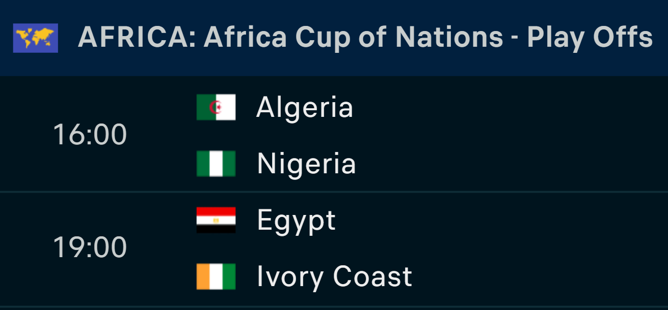 >>218330417Algeria and Egypt I'm afraidAlgeria so they set up a Semi with Morocco (the hosts) which is guaranteed bloodshed.Egypt to play Senegal in the semi just because Mo Salah is a nice fucking fella.