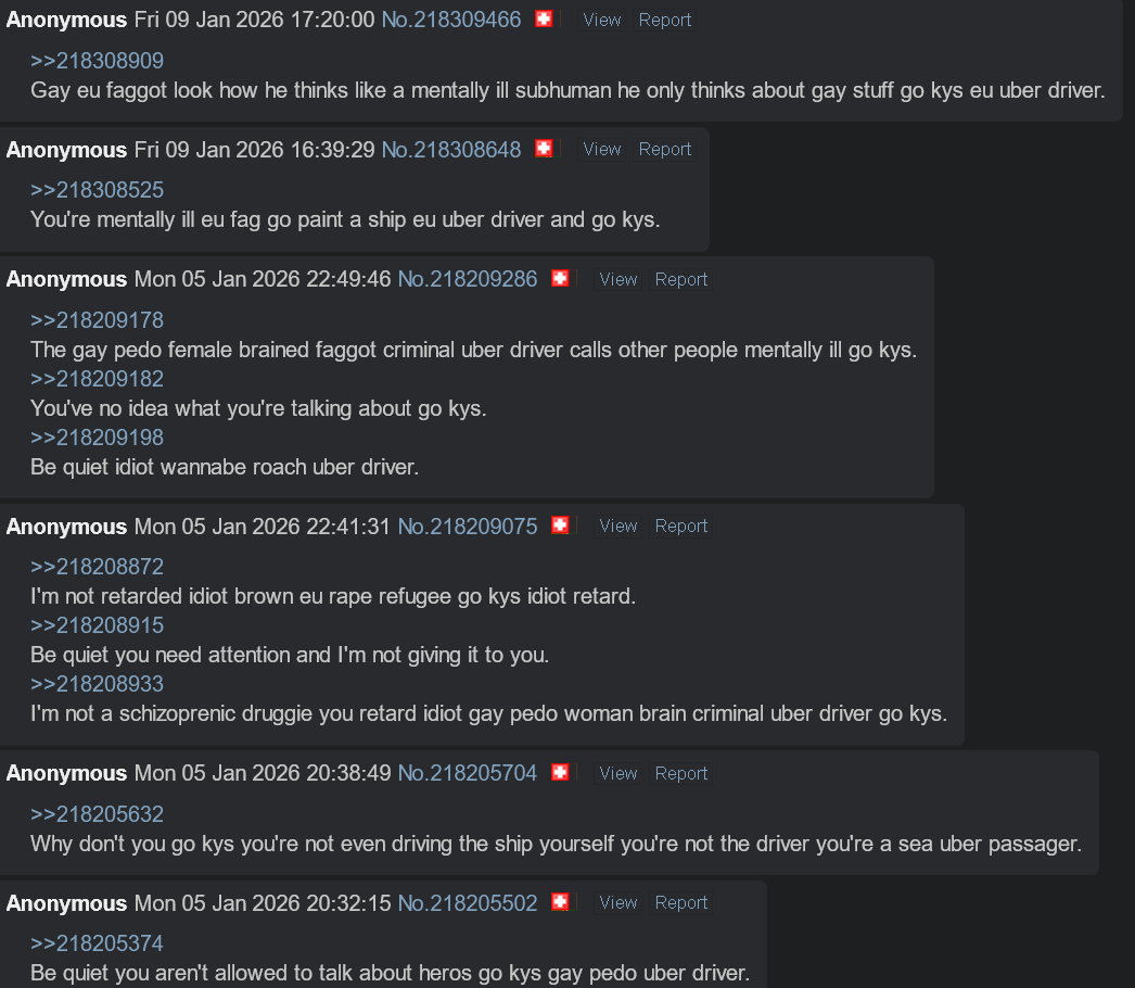 >>218344821If you act like a brown uber driver I'm going to call you brown uber driver brown uber driver I'm not suffering and I'm straight and there are no jokes you just attack me and when I defend myself you attack me more or report me.