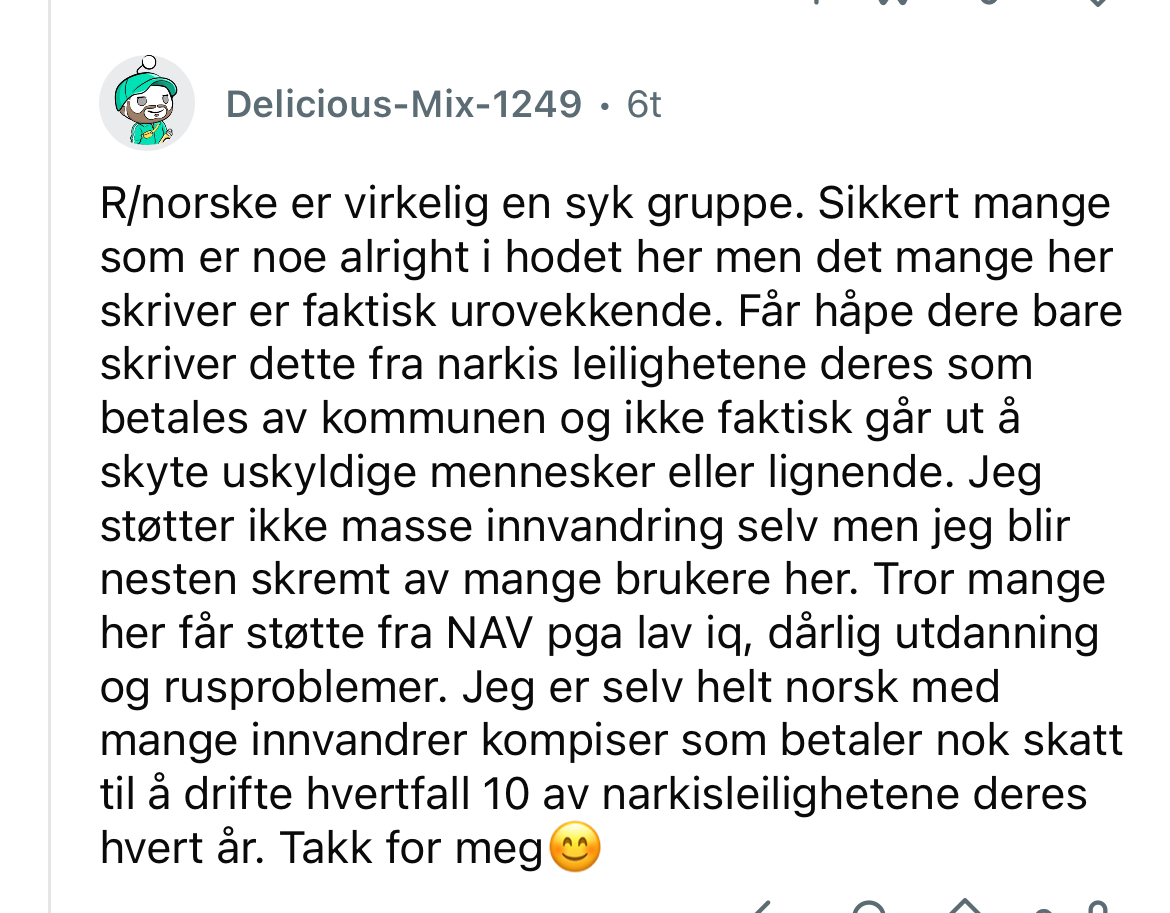 *kaster grove rasistiske ytringer inn i tråden*