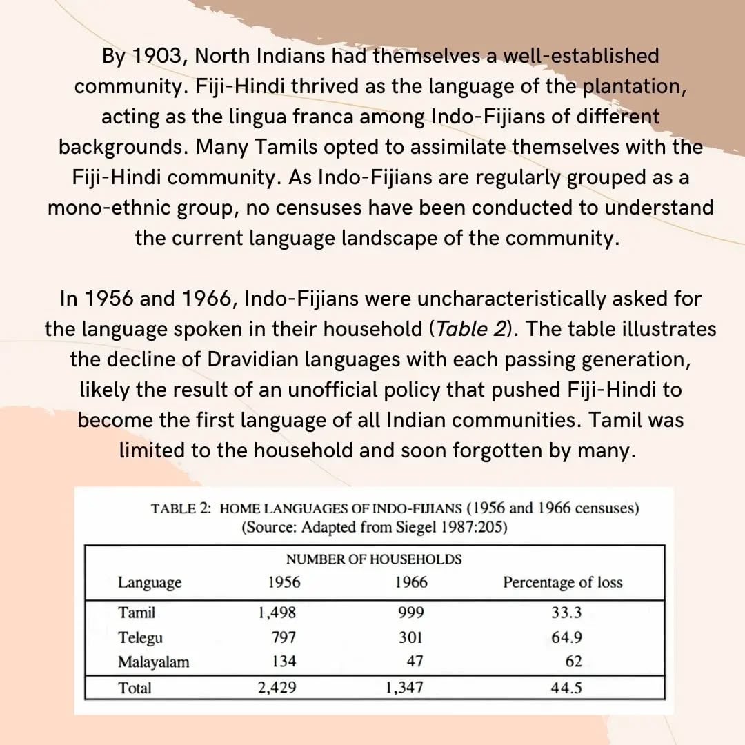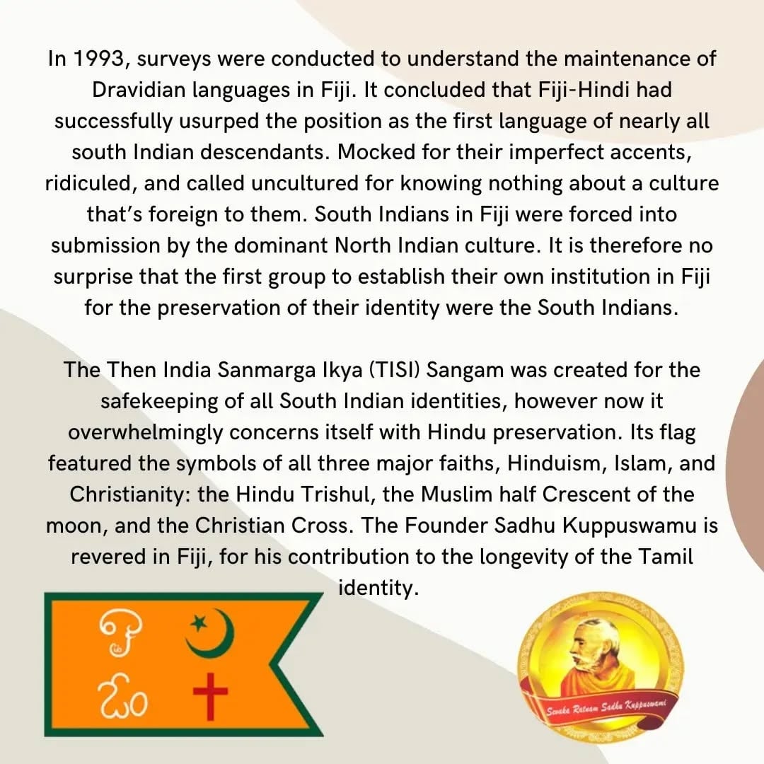 >>218357381Well it is dying out here in Fiji or almost dead. South Indians were kind of seen as the butt of jokes here and their language was kinda bullied out of them by north Indians. I'm thinking that like 99% of young South Indians don't know their languages anymore. They speak in Fiji Hindi (which is apparently mostly Awadhi/Bhojpuri). They even name their children more North Indian names now.They are a tight knit group that are protective of what's left of their culture. I hope you guys don't mind me dumping this but thus thread is pretty dead anyway.