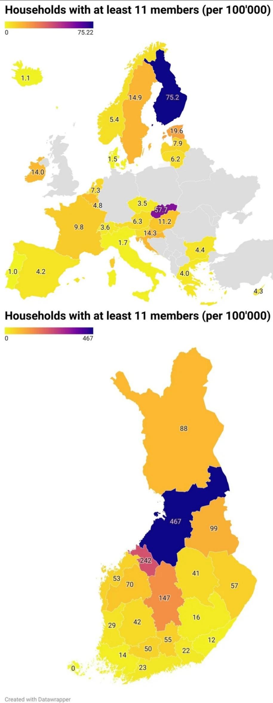 Today, Finnish media published information that Finnish fertility rate is mostly kept up by>high fertility rate religious families in northern parts of the country>fennoswedes>immigrantsgeneral Finnish population is in deep decline.Happens in your country?