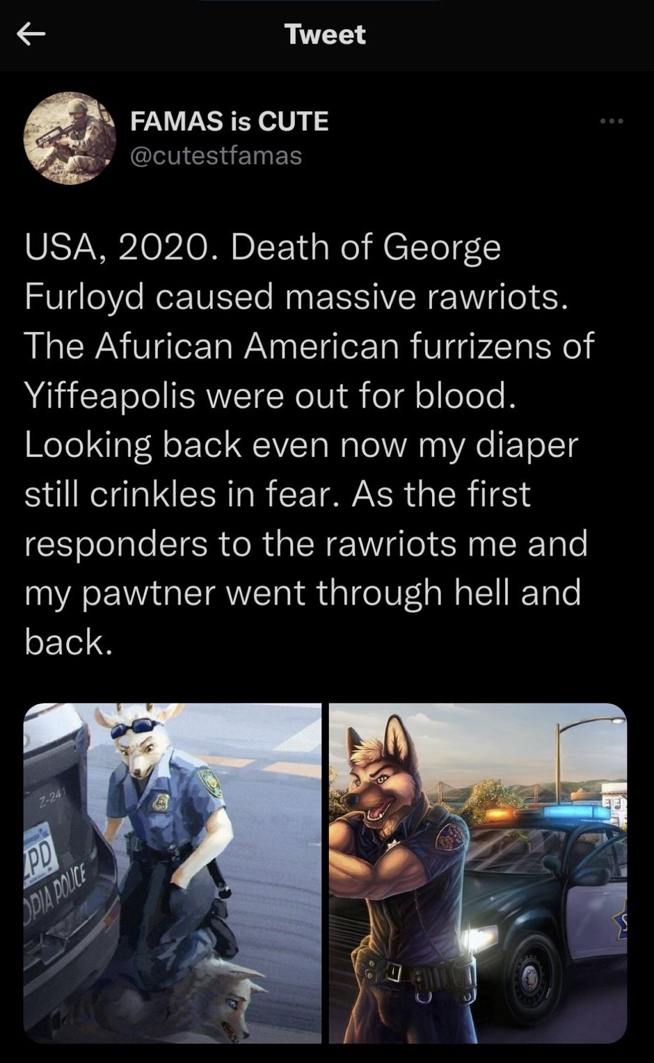 >>218377823>Standing in front of a running vehicle violates SOP He wasn't standing but in movement and the driver was commanded to get out of the car with an officer lunging for the door handle. The "wife" told her to "Drive baby drive" and the driver was looking directly at the officer in front of the car before she drove at him. Play stupid games win stupid prizes. >his wife is brown Based.
