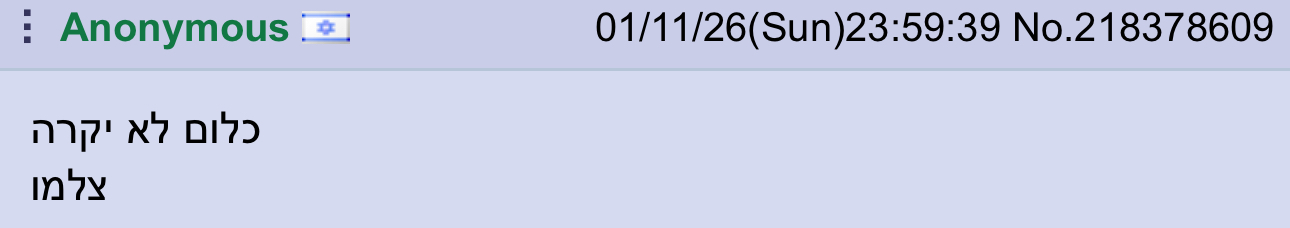 >>218379082אל תדאג פשוש רק הצפון יידפק