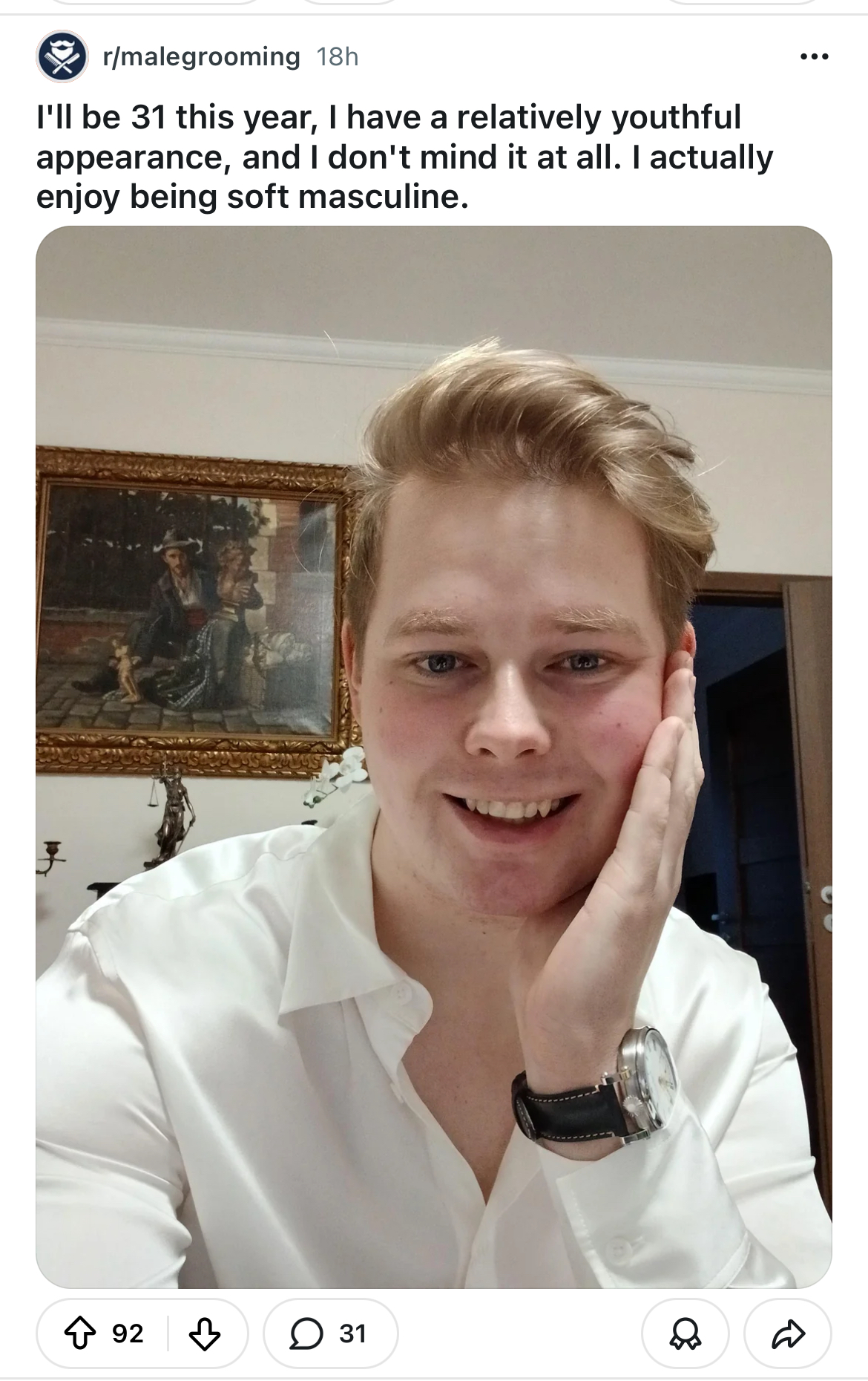 >>218393117That thinning on the crown is going to age him 20 years in the next 5.