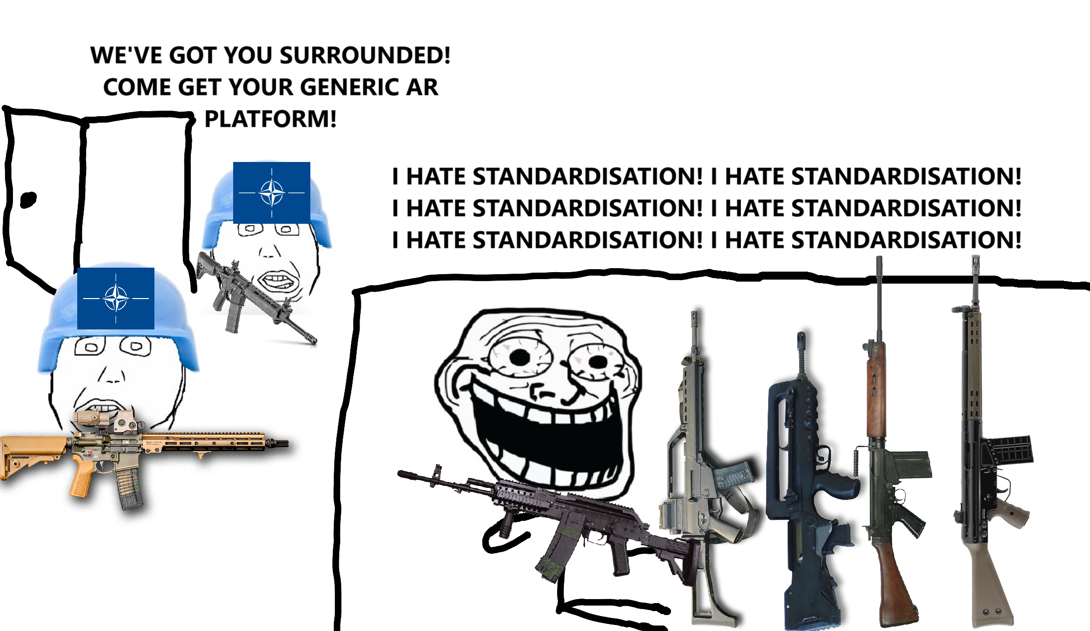 >playing ghost recon>decide to switch to a Portuguese inspired kit>go through rifle options>no G3>look it up>turns out it's not even in service anymore and it just flew by me>only Portuguese rifle in-game I could find is the HK416A5 de 11″ the Comandos use>no longer has a unique aesthetic, yet another AR slop gunthe meme is right, NATO ruined everythingit's actually fucking over the colonial war aesthetic is deadstill picked it anyway for patriotism reasons