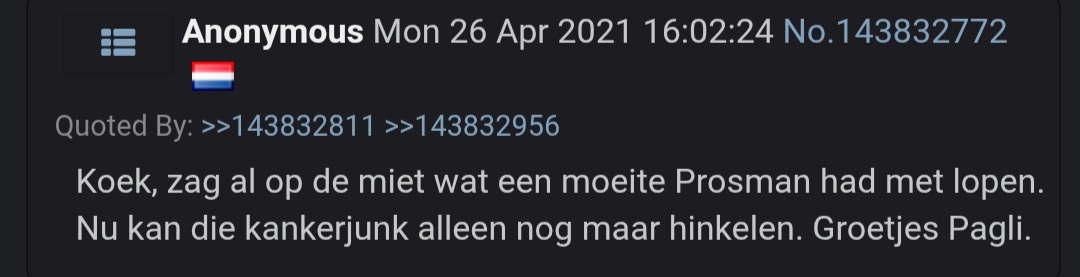 >>218436172>>218436217>p-prosman !!1die ligt al lang op ze nest kk schizo