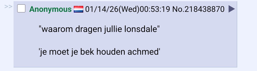 >>218439694Palen in de chum (yuh)Sokken vol met cum (yuh)prosman die is dum (duhh) manne op mn block en we fakken ni, vlaampjes aan de top en we vallen ni, ben met dirk en ziedbelg, free dries en we ballen G, want je weet, dit is Brussel west (oui)Nog steeds in de hood, steeds living good, hier en tot kort ook in de polder, altijd blijven scrollen door die folders, m'n nierstenen net boulders ma de draad op mn schoulders (yuh yuh yuh yuh yuh) Fuck Den belgiek en het hele sys-teemze willen dries pakken ze ma kunne ni om ons heenProsman! 50 bands 1 been ni tzelefde niveau nee ni eens dezelfde gameSverigeniggas denken ze zijn ons ma ze zijn echt ni de sameYuhSO BXL MKK BTN KNN BTNFlikkers met hun kanker kikkers trennies met hun kanker platen Groomcordniggas of de begeleiding Big Pros kunnen ze echt niks maken van mij mogen ze blijven haten (-nee jij!-j) (adlib) Ja we vlammen tot aan chumdraad welkom in de nederdraad waar iedereen zn leven haat geen spelfout door de vingers gaat (-Bruin!-)(adlib)pfff (blaast rook in de camera)en in de nacht gaan we deze shit paffenMet Frits grappenHele leuke draad ma ge zou er effe niks snappenDat was mijn freestyle waarschijnlijk niet op beat maar ja kben dan ook ni bruin
