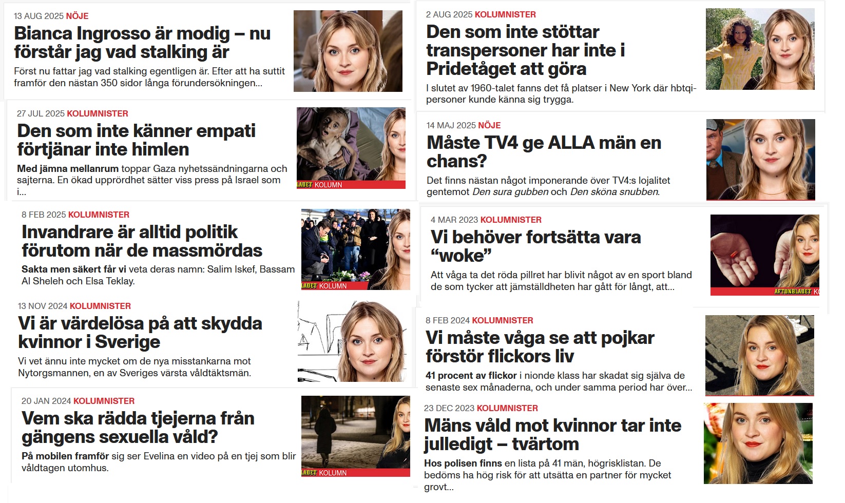 >>218465458hela aftonbladets krönikosida ser ut så därmassa idiotisk libtardskit hela dagarna