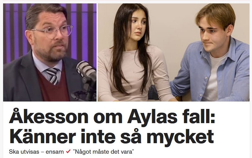 >>218465695https://www.aftonbladet.se/nyheter/a/wreeV5/akesson-om-att-ayla-21-utvisasHan sa att hon inte ska utvisas om hon inte gjort något fel.